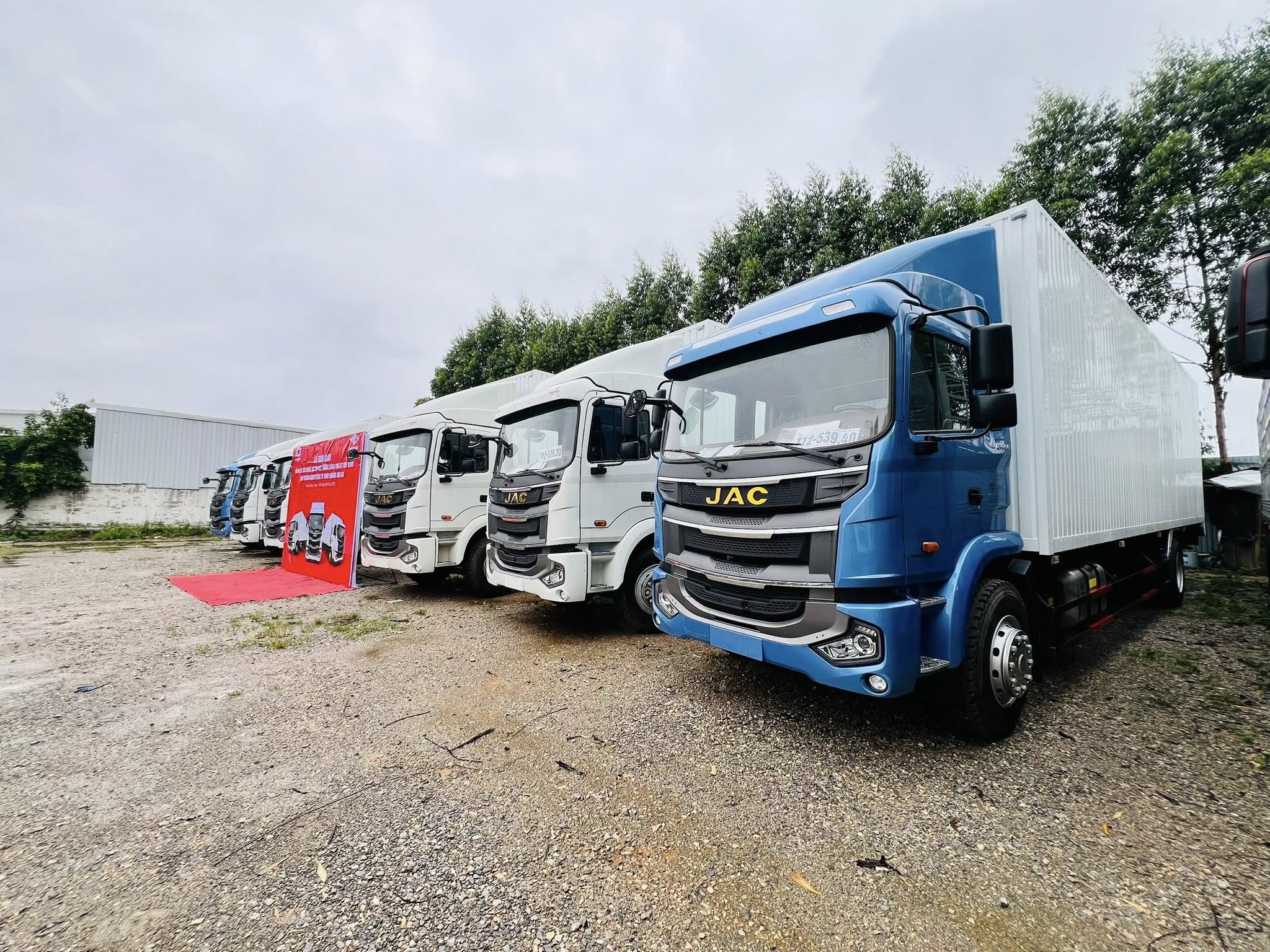 Lễ bàn giao lô 06 xe tải thùng JAC A5 4×2 thùng công pallet 3CH 9.9M diễn ra ngày 10/06/2025.