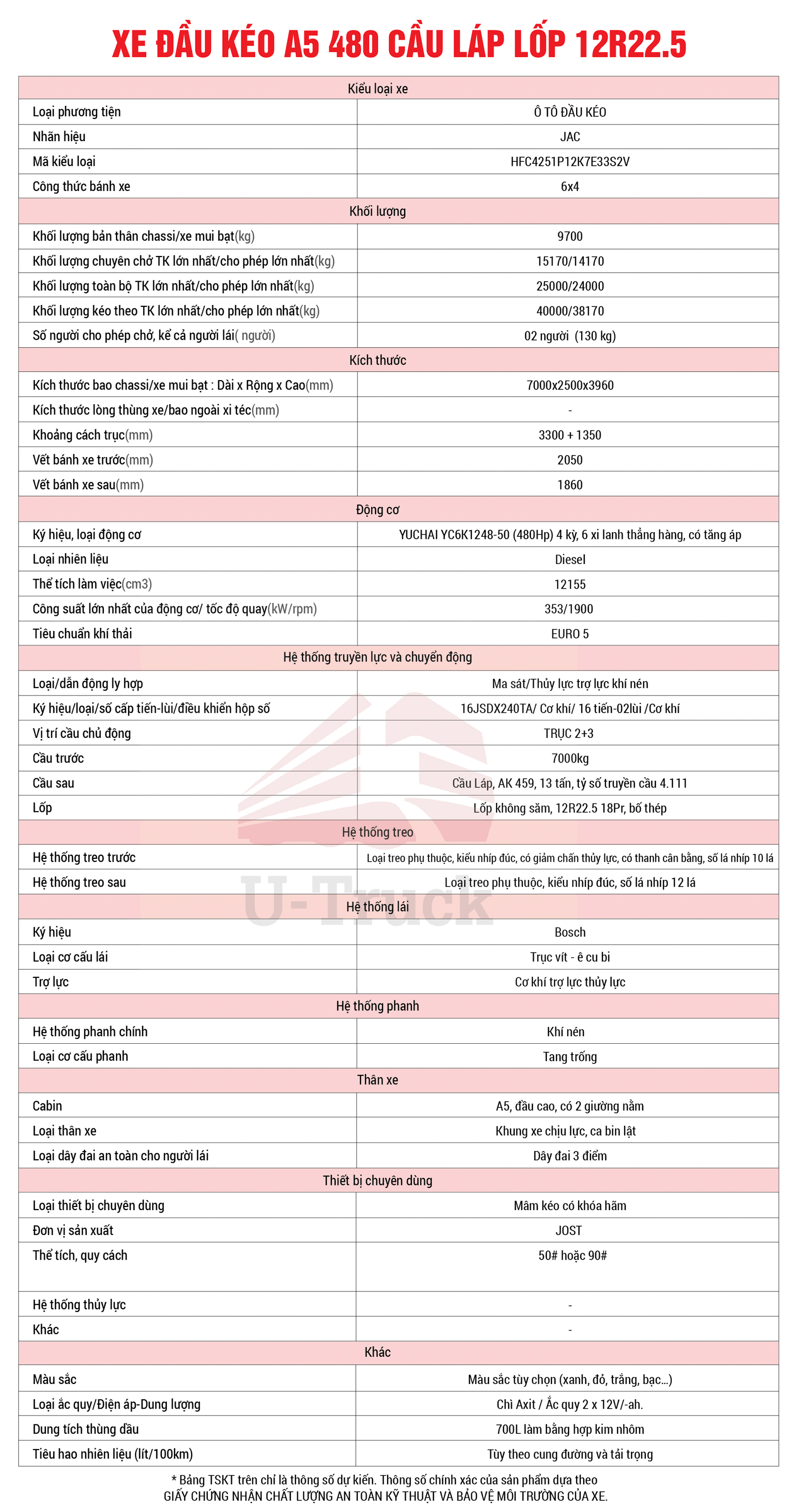 Xe đầu kéo JAC A5 480 cầu láp là sản phẩm nằm trong bộ sưu tập mới nhất của JAC, thuộc phân khúc xe hạng nặng máy điện được nhập khẩu và phân phối ở thì trường Việt Nam. Với ngoại quan cabin A5 mới, động lực khỏe, cấu hình siêu tiết kiệm nhiên liệu. Phục vụ đa dạng hóa nhu cầu vận tải, kéo mọi loại hàng hóa, đặc biệt là vận tải đường hỗn hợp, đường trường, đường dài, chở hàng nặng siêu tốt.