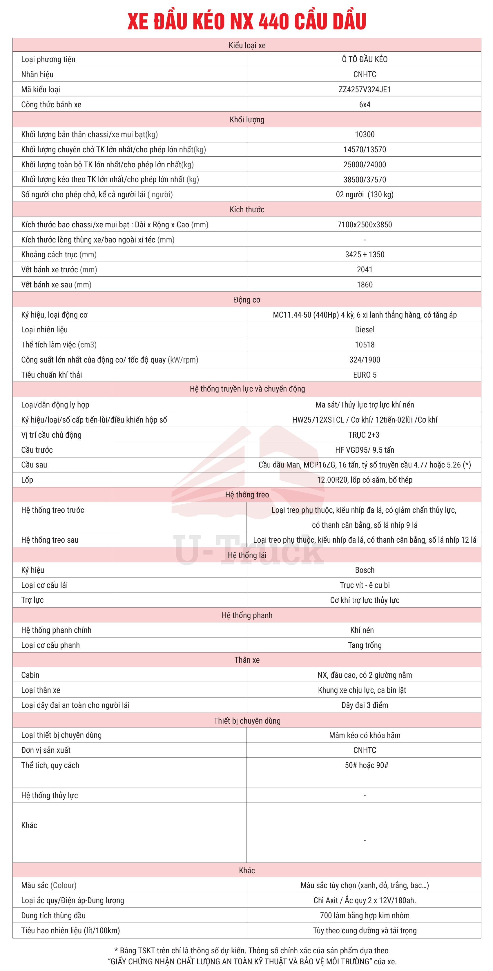 Xe đầu kéo HOWO NX 440 cầu dầu
