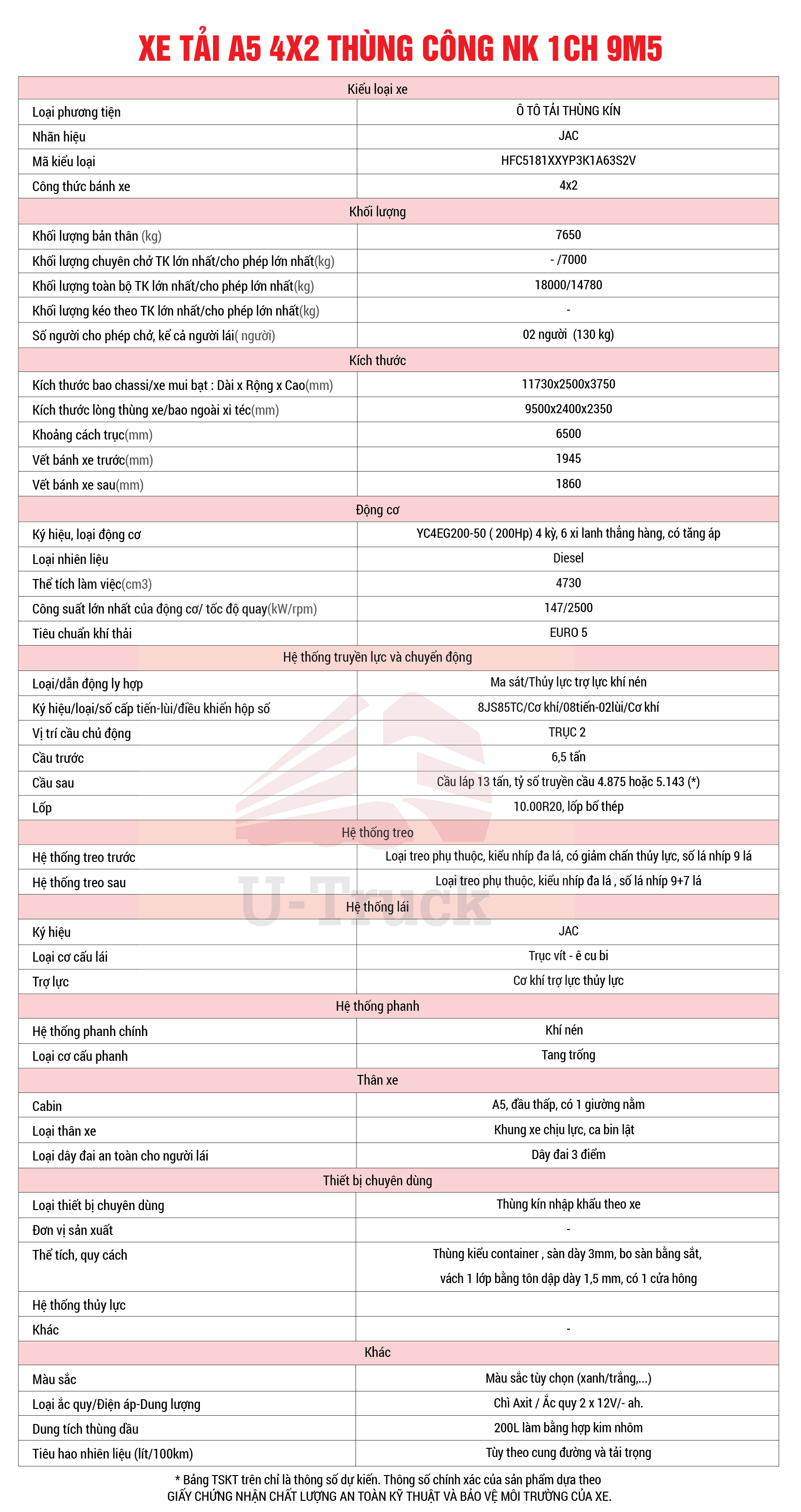 Xe tải JAC A5 4X2 thùng công Nhập Khẩu 1CH 9M5