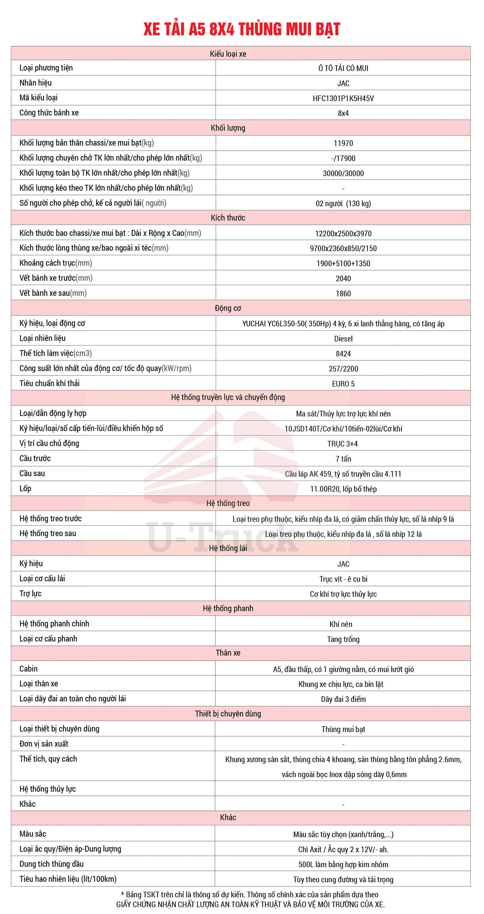 Xe Tải JAC A5 8X4 mui bạt 9m7 là sản phẩm nằm trong bộ sưu tập mới nhất của JAC, thuộc phân khúc xe hạng trung – hạng nặng được U-TRUCK nhập khẩu và phân phối ở thì trường Việt Nam.